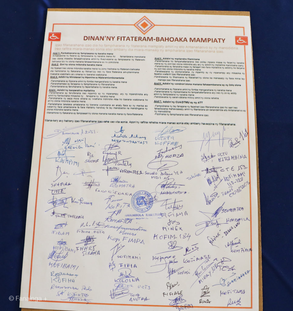 La charte signée repose sur 7 articles majeurs, dont l’application est désormais entre les mains des institutions et des acteurs du transport. On y retrouve notamment la reconnaissance officielle des droits des détenteurs du Karatra Mena, l’affichage obligatoire des autocollants de priorité sur tous les bus, deux sièges réservés aux PSH, aux personnes âgées et aux femmes enceintes et situés près de la sortie de taxi-bé , la formation des chauffeurs et receveurs de taxi-bé sur l’accueil, la priorité et l’assistance des PSH, le suivi de l’application de la charte qui sera assuré par la CUA et l’ATT et la sensibilisation des agents par la police nationale et municipale. Ces engagements ne sont plus que des intentions. C’est écrit, signées et maintenant appliqués.